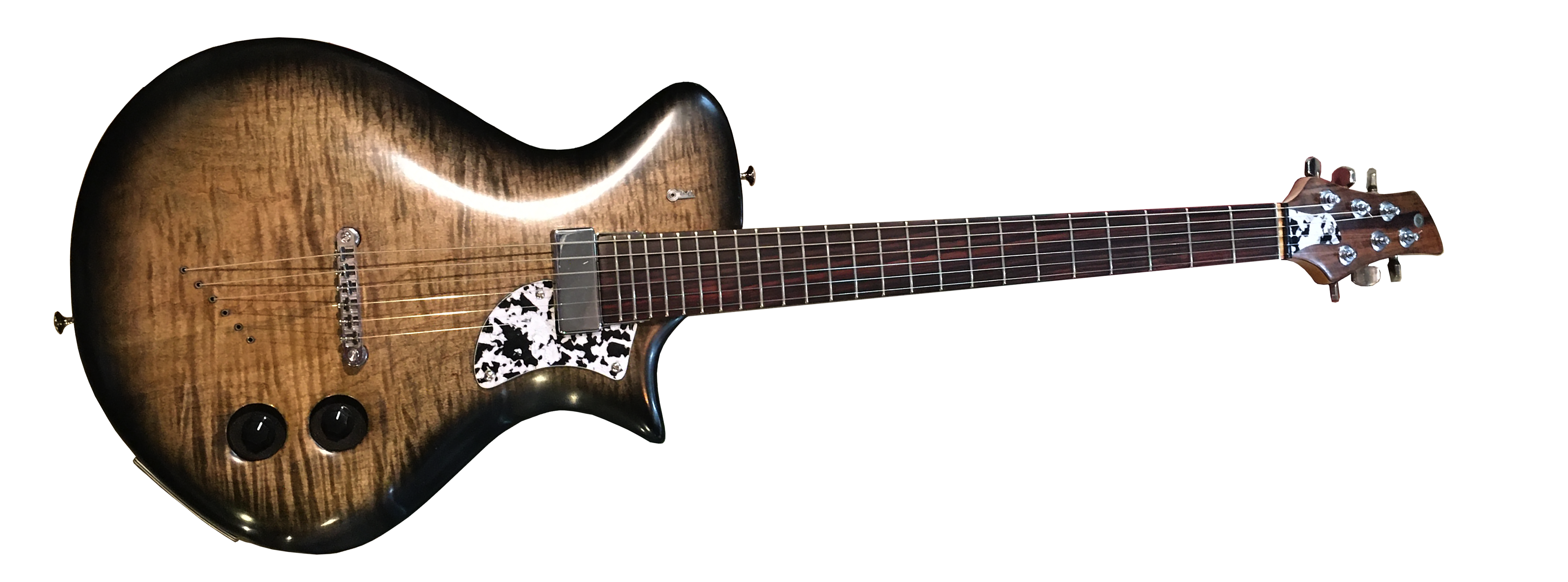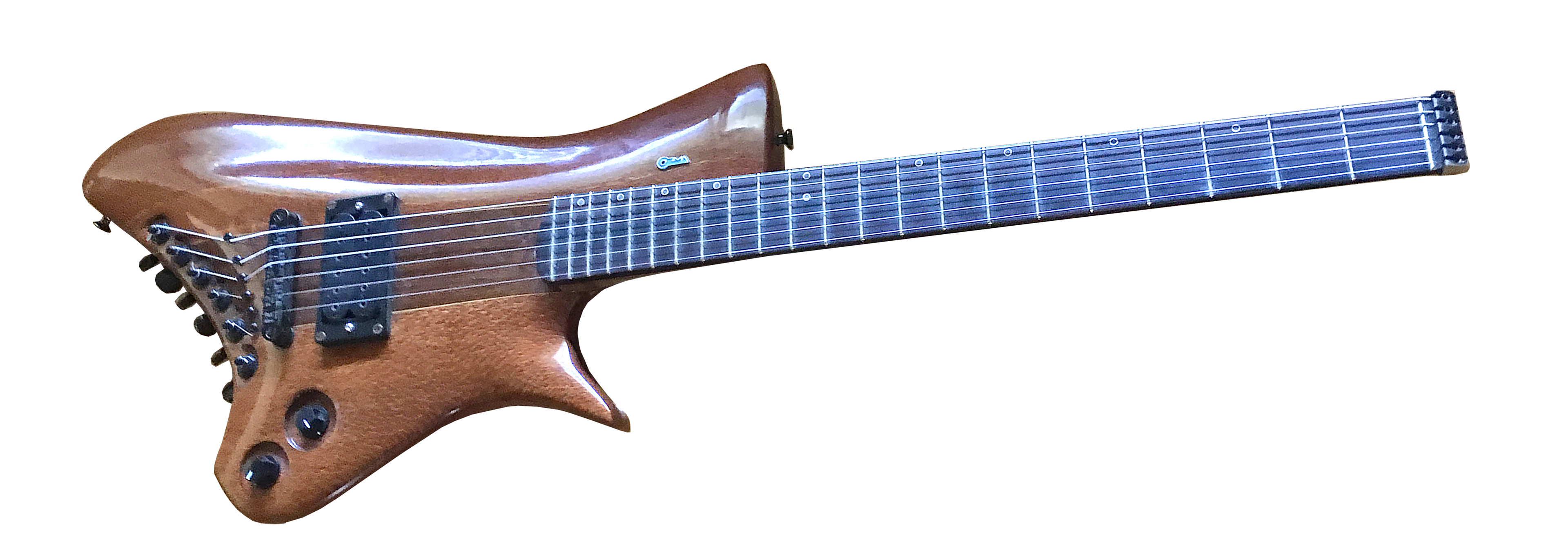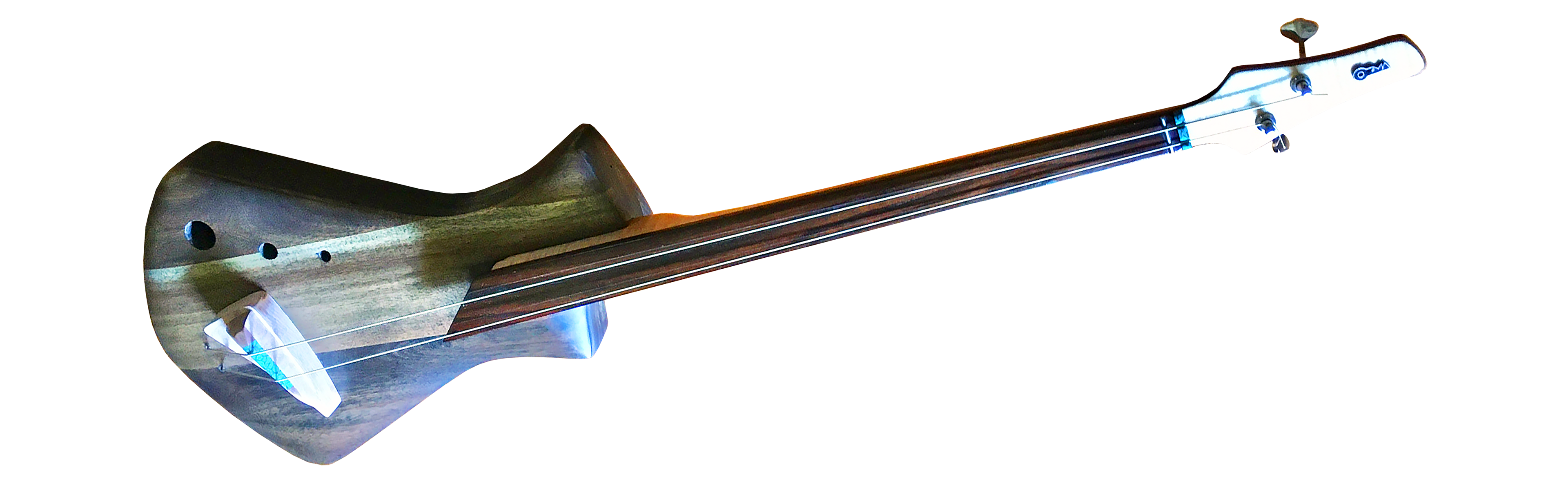 OZMA instruments is a pet project of mine, established in 2010. Under this name, I create one-of-a-kind functional art for experimental musicians. Future-retro designs with uncommon features and unusual string pairings, often created from recycled materials. The logo represents an alien landscape with a rising planet on the horizon.
